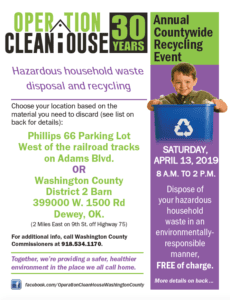 Operation Clean House — an event aimed at helping Washington County residents dispose of hazardous household and automotive goods without harming the environment or endangering human health — will be held this year on April 13.