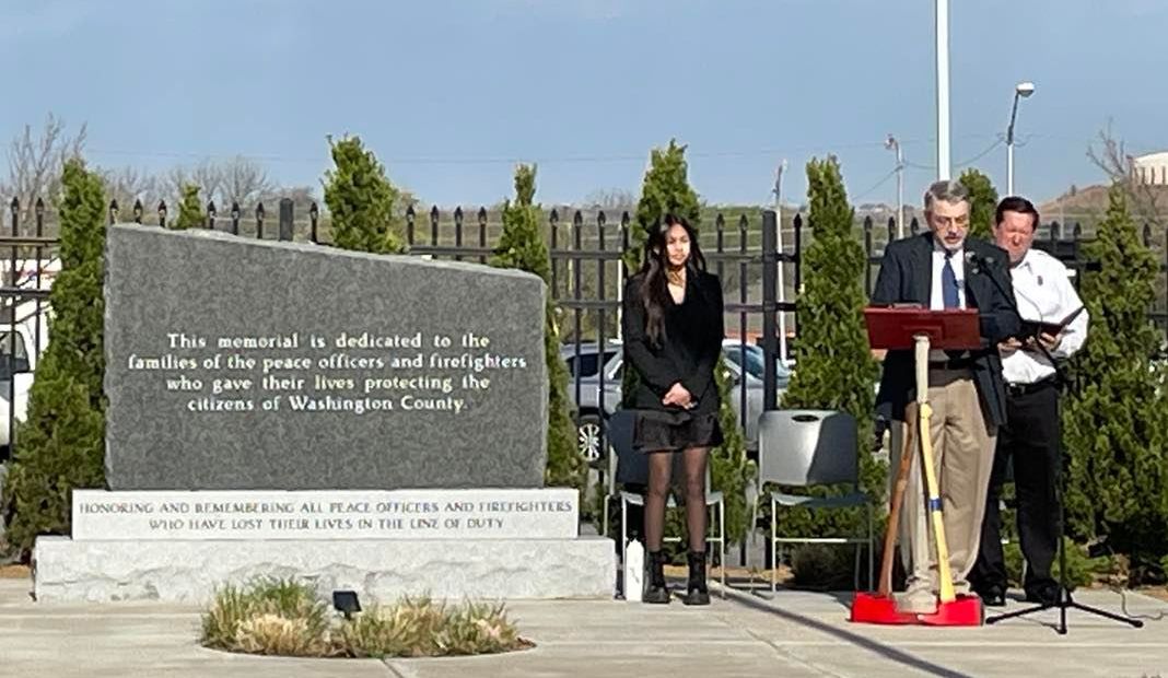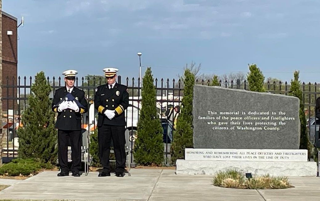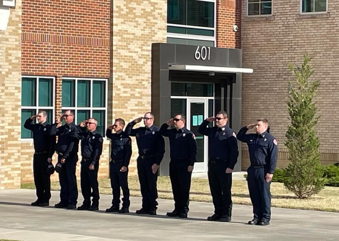 Bartlesville Fire Chief David Topping, right, and Deputy Chief Jerry Berry participate in the ceremony.