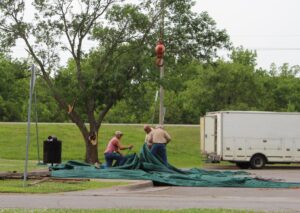 “Recent rains and muddy ground delayed the project because we didn’t want the crane to get stuck,” said Director of Engineering Micah Siemers. “We had an opening (on Tuesday) and crews were able to get the shade structure reinstalled.”