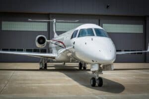 The shuttle is an Embraer ERJ145XR, similar to regional jets operated by major carriers, and is based at the ConocoPhillips Global Aviation hangar in Houston.