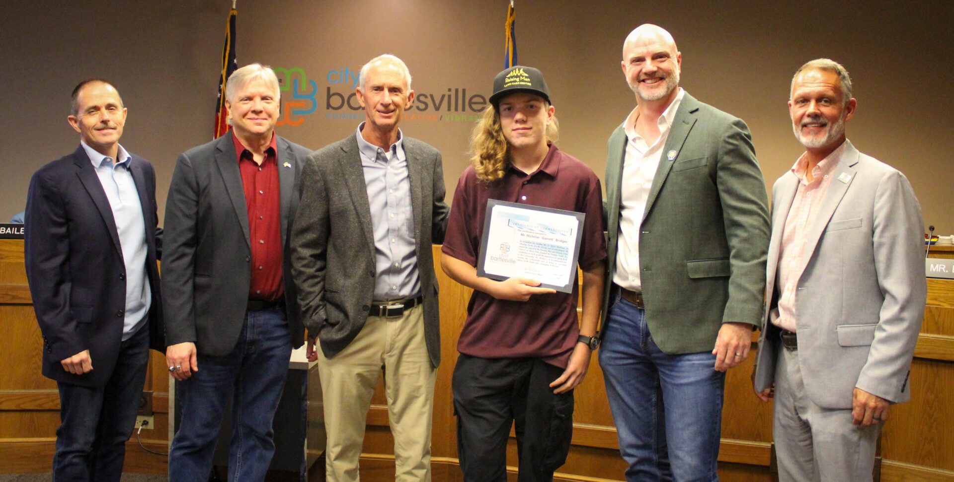 Bartlesville teenager Nicholas “Garrett” Bridges received a commendation from the City Council after completing the “50 Yard Challenge” — mowing 50 lawns for free for veterans, single parents, senior citizens and others in need.