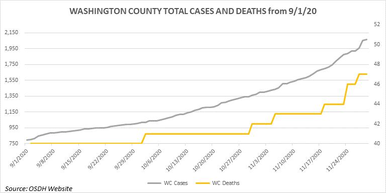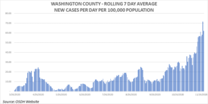 New infections of Covid-19 over the weekend continued to skyrocket across the county — including Washington County.
