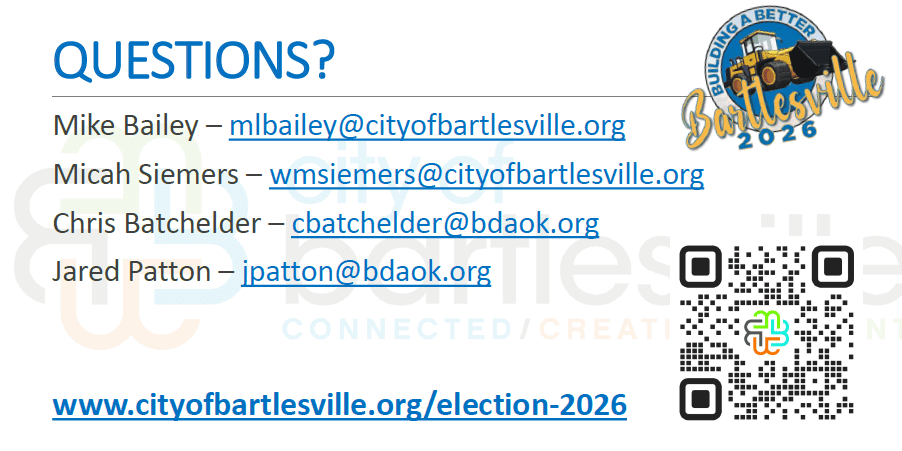 Information about all five proposals is available on the City website, www.cityofbartlesville.org, in City Beat, Archived editions, the MyBartlesville Mobile App, and the City’s Facebook City of Bartlesville GOV and YouTube City of Bartlesville YouTube accounts.