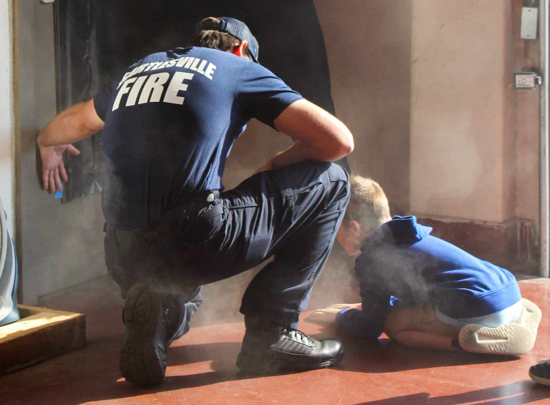 In honor of Fire Prevention Week, first-graders visited Bartlesville Fire Department’s Central Fire Station on Oct. 10 to learn about fire prevention and safety, including how to feel the temperature of a door and how to crawl through a smoky room.