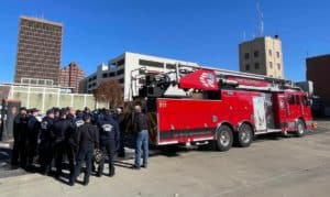 The truck will allow access to many of the city’s taller buildings and is a step forward in improving the department’s ISO rating — a score issued by the state’s Insurance Services Office based on how prepared the department is to protect the community from fires.