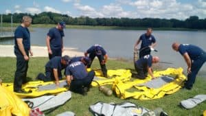 Bartlesville firefighters utilized Lee Lake as a training ground for water rescues last week.
