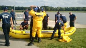 According to Fire Department PIO/Training Officer Bill Hollander, firefighters donned dry suits and used their inflatable rescue boats to simulate real life emergencies and rescue situations.