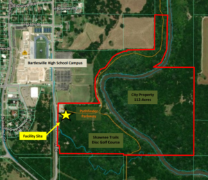 “The City of Bartlesville owns approximately 112 acres of real property on the east side of Shawnee Avenue south of 18th Street,” Beeman said. “This land, all located within the Caney River floodway and floodplain, was donated to the City in the 1970s by the Jackson family for the construction of Pathfinder Parkway through this area.”