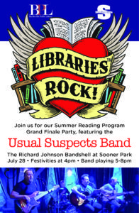 The Bartlesville Public Library invites the public to help celebrate the close of the Summer Reading Program with a grand finale — a free rock concert at Sooner Park.
