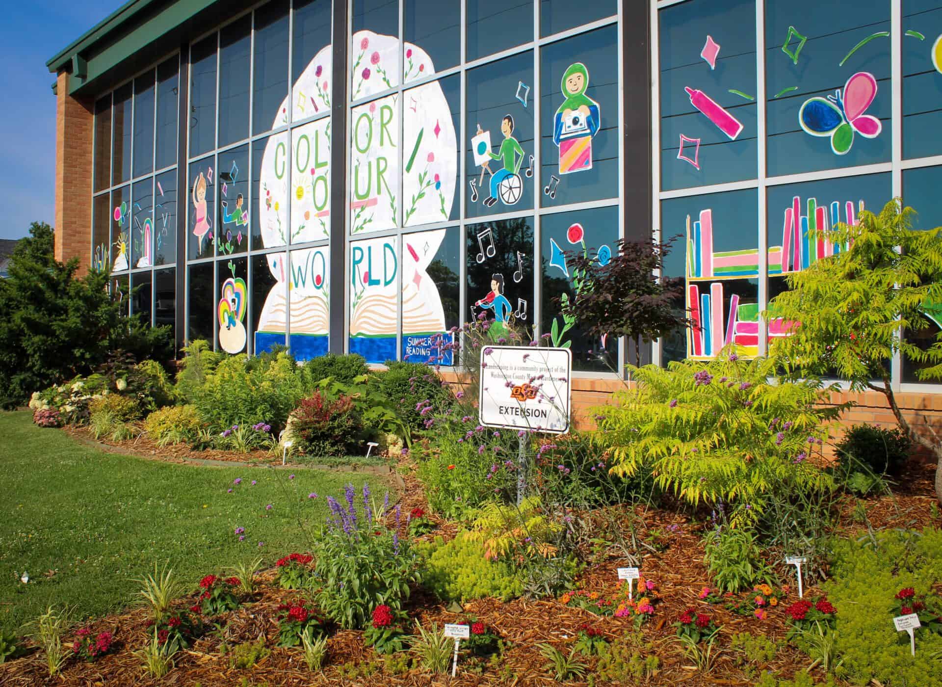 The flower beds at Bartlesville Public Library are bursting with color thanks to the Washington County Master Gardeners, who maintain the beds as a community service project.