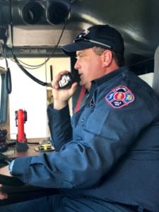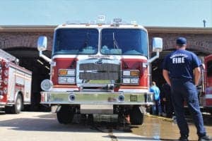 After the water was transferred, several firefighters, along with City Councilors Jim Curd and Paul Stuart and City Manager Mike Bailey, assisted with pushing the vehicle into a bay at Station 3 to signify pushing it into service. Everyone then had a hand in washing the truck, and dispatch was contacted to officially put the truck into service.