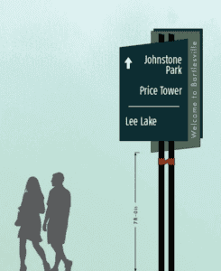 The project involves the construction of gateway signage into the city at major entryways and wayfinding signage for parks and recreational facilities as well as the downtown redevelopment district and downtown entryways. It was recommended in the 2013 Community Strategic Plan and approved by voters in the 2018 General Obligation Bond Election.