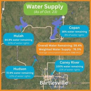 Bartlesville and the surrounding area has been battling drought conditions since last December, thanks to declining lake levels at the City’s primary water sources, Hulah, Copan and Hudson lakes.